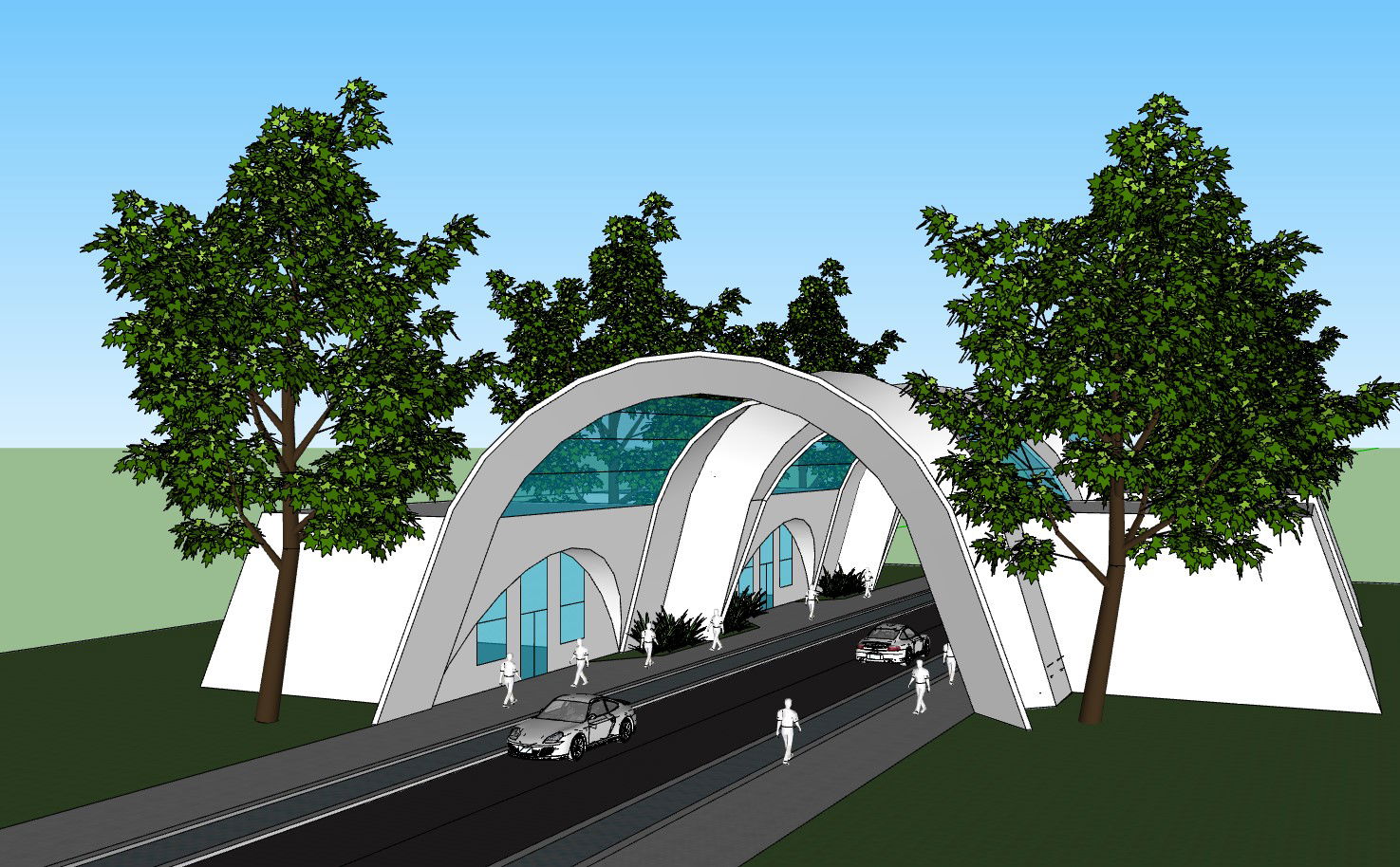 3D Man made Tunnel with galled side waiting area and natural beauty around.