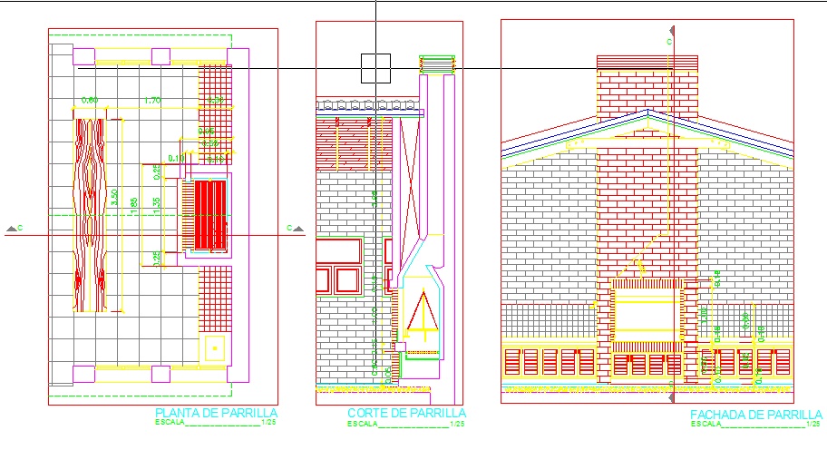 Here is the detailed autocad dwg of grill detail and its elevations and sectional details and plan.