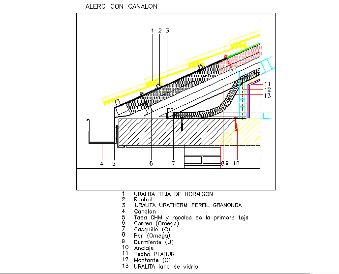 Here is the detailed autocad dwg of plan and elevation of inclined roof detailssof concrete tiles.