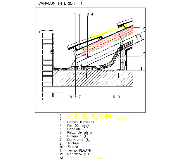 Here is the detailed autocad dwg of inclined roof sof concrete tiles uralita details with its elevations.