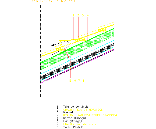 Here is the detailed autocad dwg of inclined roof sof concrete tiles uralita details with its elevations.
