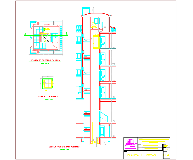 Here is the detailed autocad dwg of detail of elevator with its detailed plan and elevations of every floor of the building.