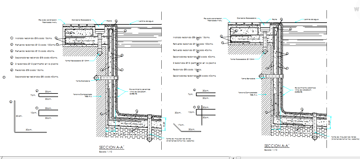 Here is the detailed autocad dwg of pools overflow with its detail plan and elevations.