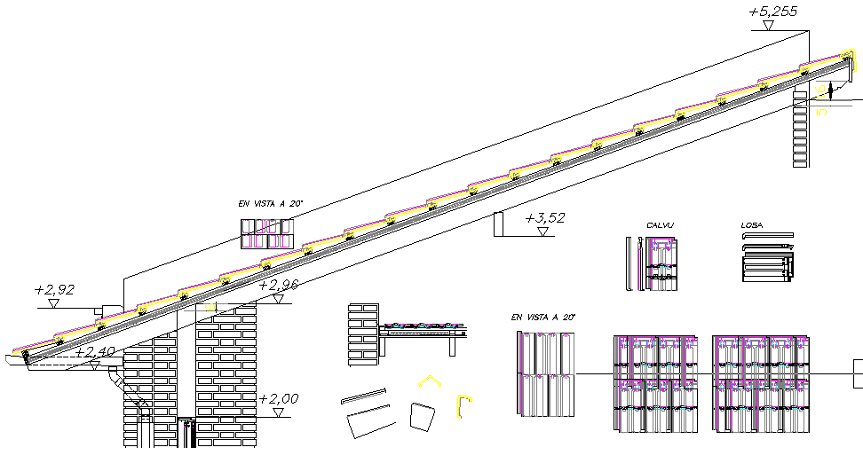 Here is the detailed autocad dwg of tiles roof with its detail elevation showing level of tiles on the roof.