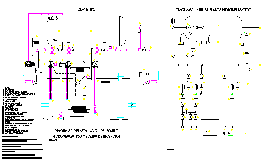 Here is the detailed autocad dwg of detail of hydro pneumatic and bomb against fires with its detail elevations.