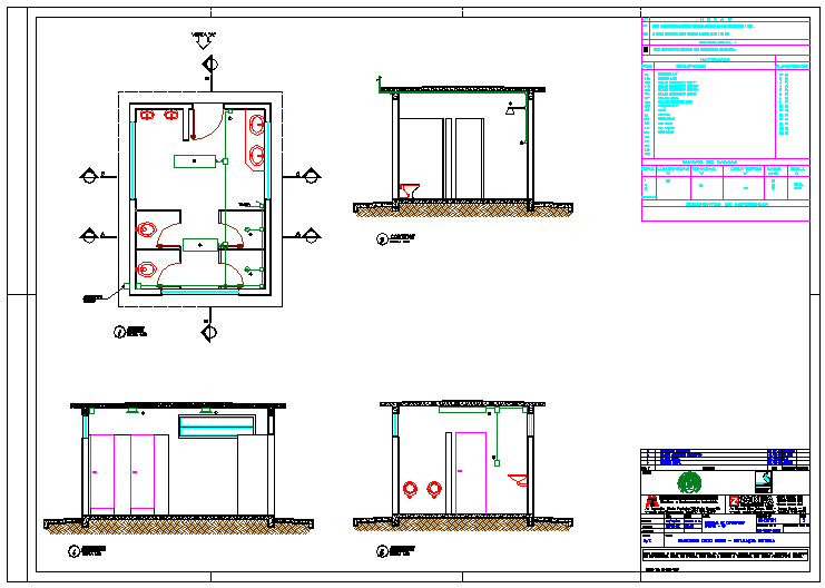 Here is the autocad dwg file for a bathroom plan with its elevations . A bathroom is a room in the home for personal hygiene activities, generally containing a sink (basin) and either a bathtub, a shower, or both.