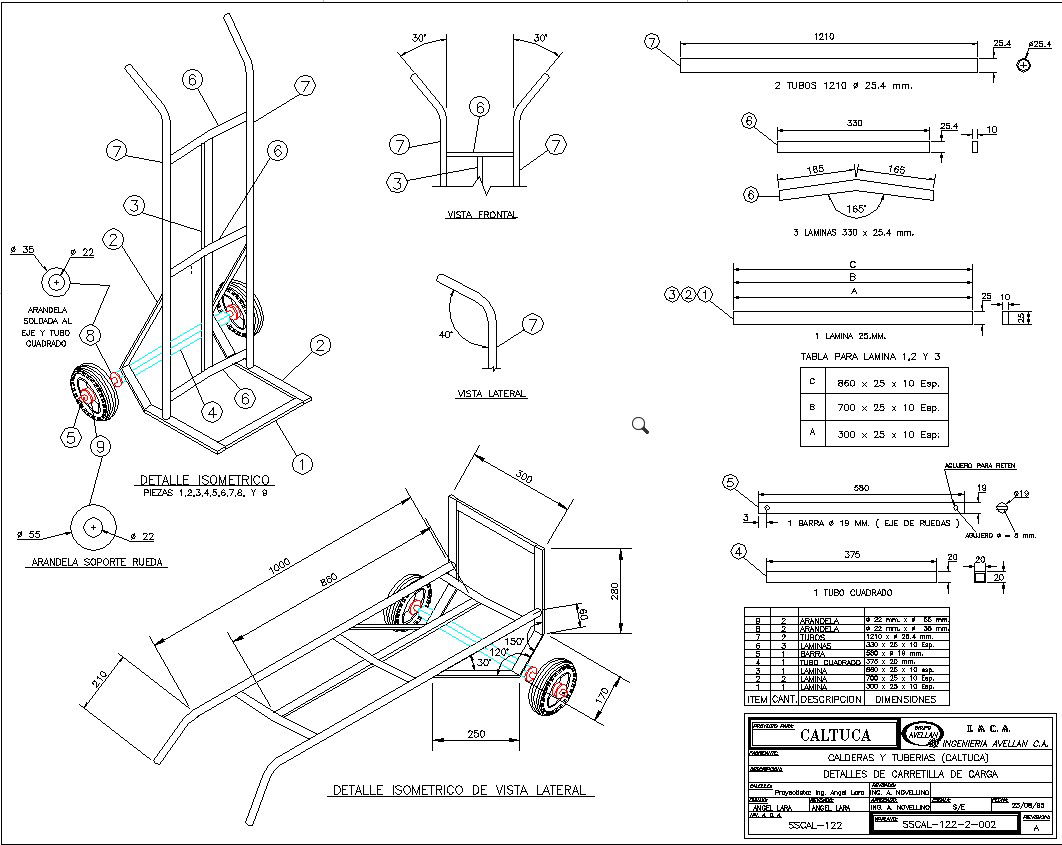 Here is the detailed autocad dwg of wheel barrow with its detail plan and 3D view elevation in autocad dwg.