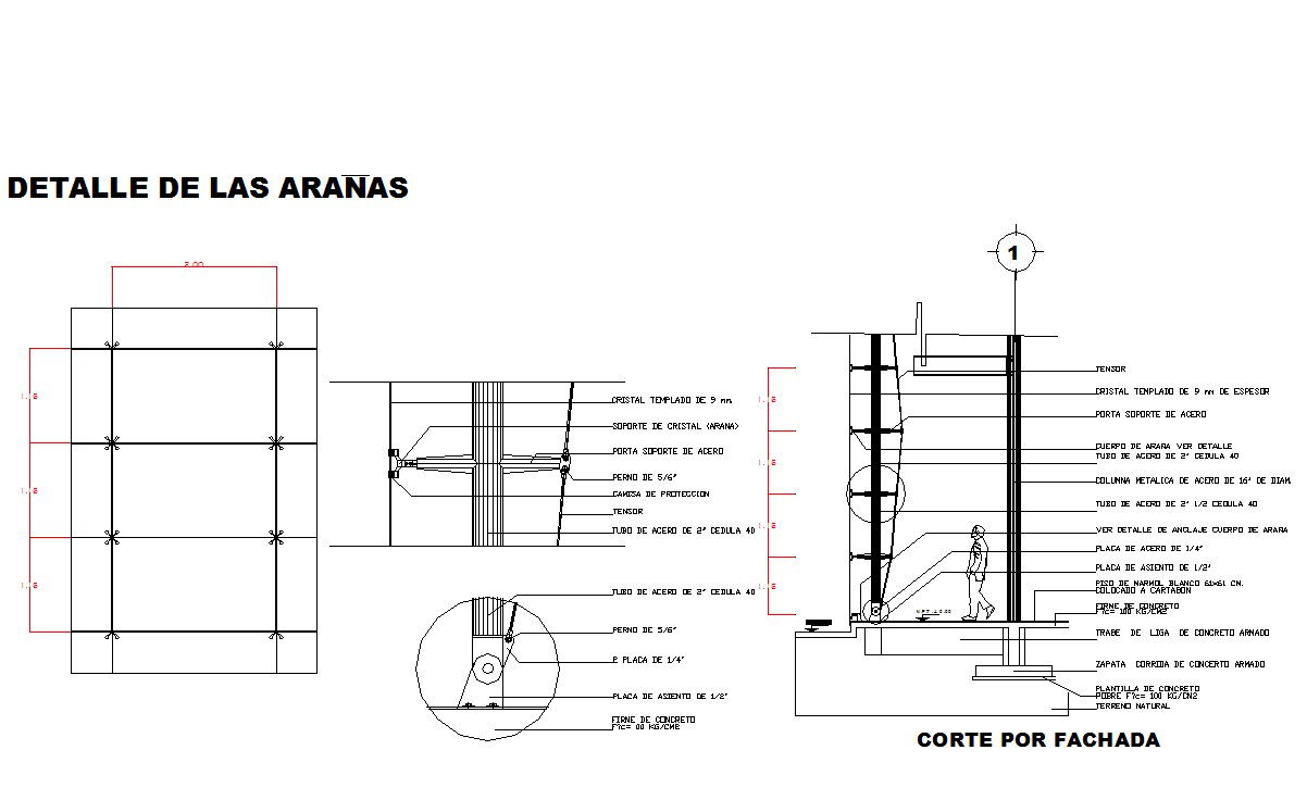 Here is the detailed autocad dwg of detail installation of spiders in crystal facades with its detail plan and elevation with reference to human body