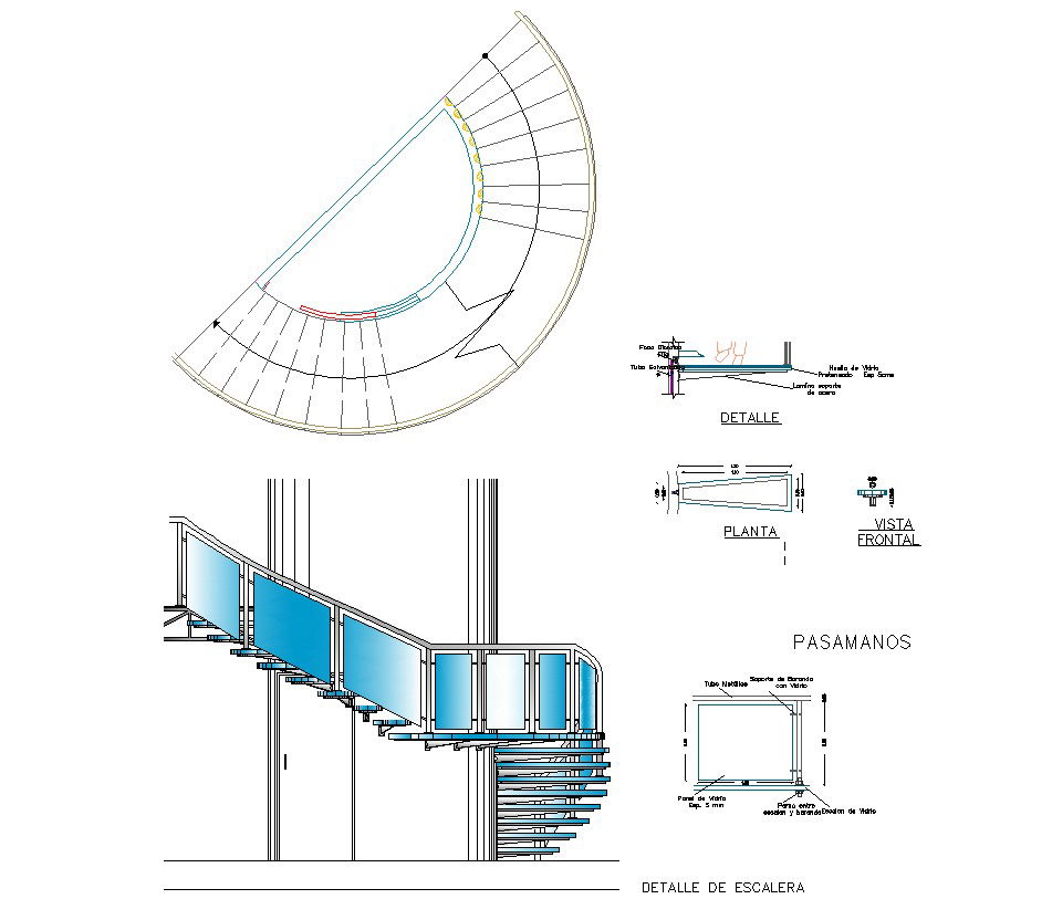Here is the detailed autocad dwg of detail of glass stairway with its detail plan and its 3d view elevation in autocad dwg file.
