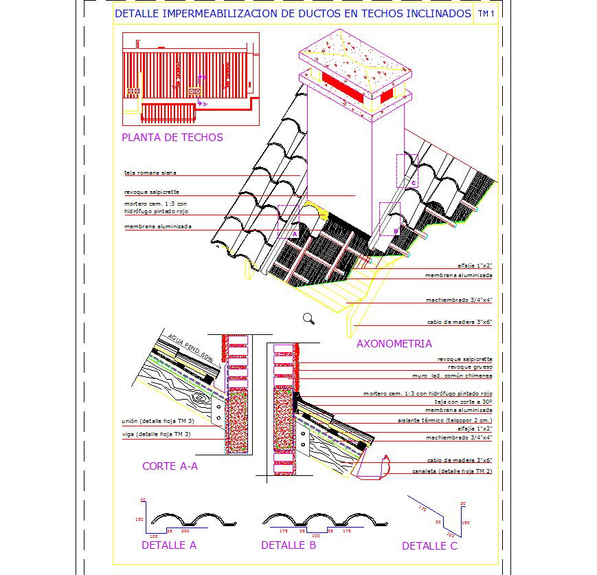 Here is the detailed autocad dwg of water proofing of roofs with its detailed plan and elevation of roof and its 3d view in elevation of autocad file.