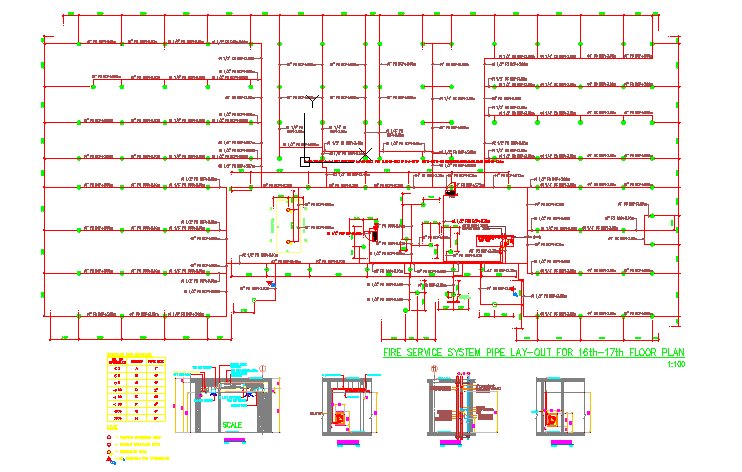 Here is the autocad dwg file for Fire service system pipe layout .Firefighting is the act of attempting to prevent the spread of and extinguish significant unwanted fires in buildings, vehicles, woodland, etc