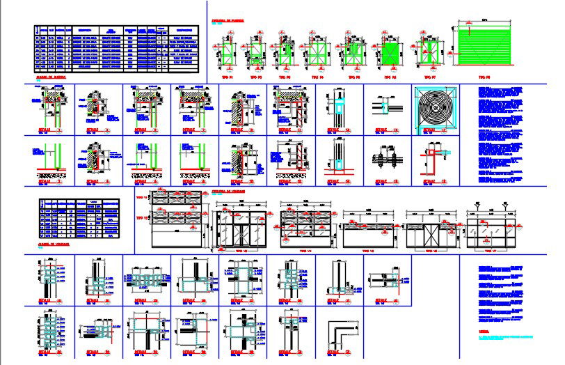 Here is the detailed autocad dwg of metallic carpentry with its detail plan and elevations of the doors and windows with aluminium frames.