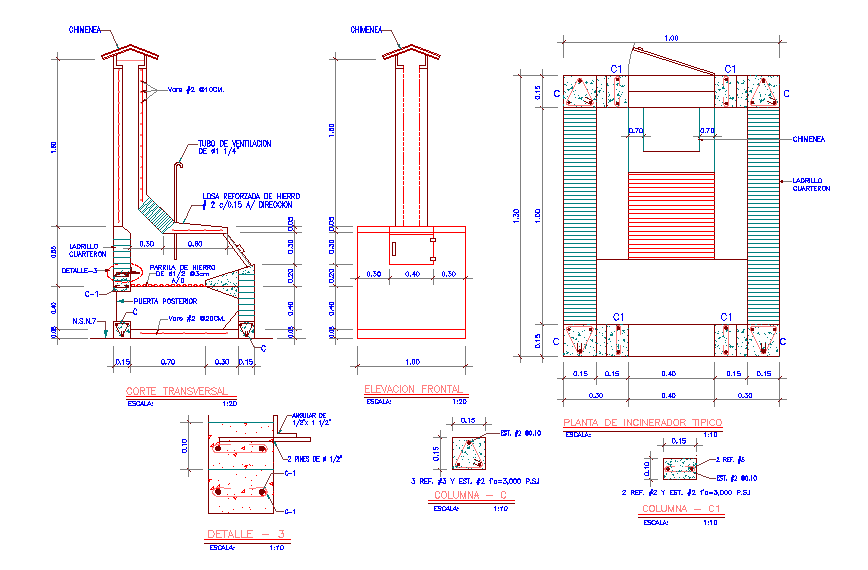 This is an Autocad Dwg file for details of Incinerator with front elevation, side elevation and detailed plan.An apparatus for burning waste material, especially industrial waste, at high temperatures until it is reduced to ash.