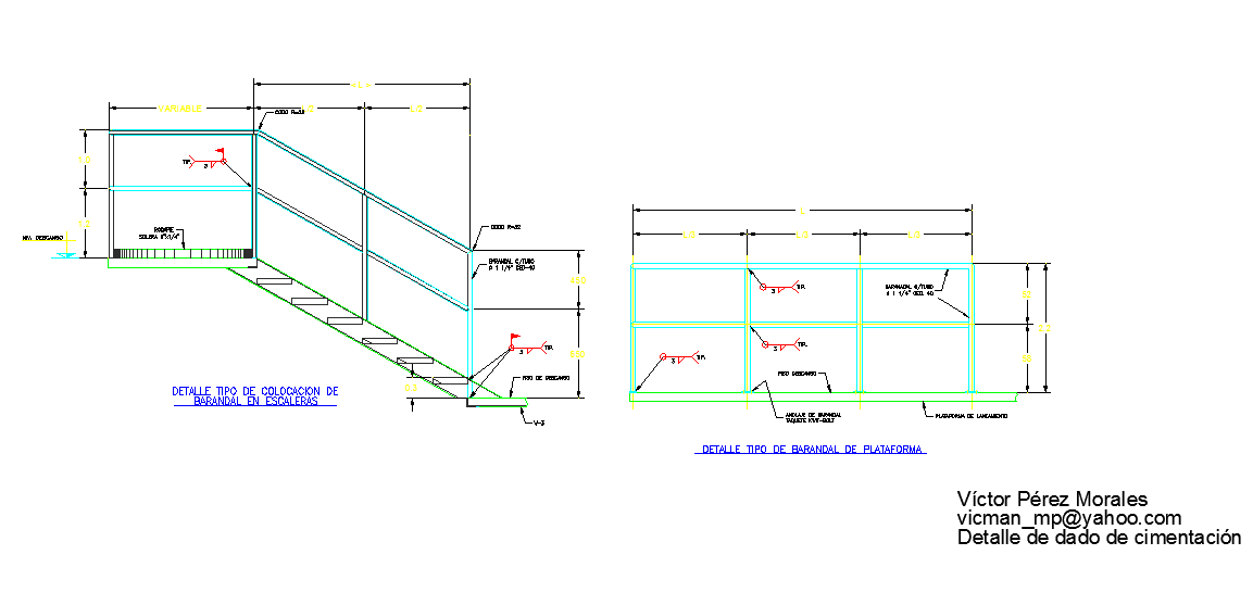 This is an Autocad Dwg file for details if Hand Rail Stair way front and side elevation. Handrail definition, a rail serving as a support or guard at the side of a stairway, platform.