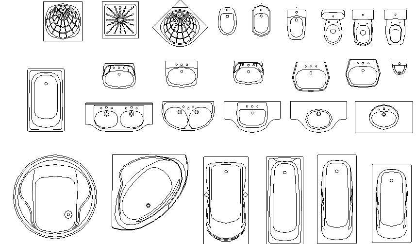 Here is an autocad dwg file for Autocad libraary for bathroom accesories . there are wash basin and bath tub's plans .