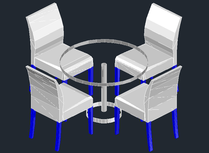 Here is an autocad dwg file showing 3d view of dining table set with chairs. the table at which the main meal of the day is served, or the occasion when this meal is.