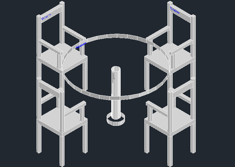 Here is an autocad dwg file showing 3d view of dining table set with chairs. the table at which the main meal of the day is served, or the occasion when this meal is.