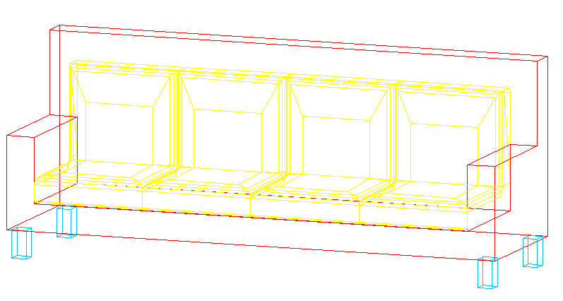 Here is an autocad dwg file for 3D view of a sofa set. A long upholstered seat with a back and arms, for two or more people. as modifier 'sofa cushions' .