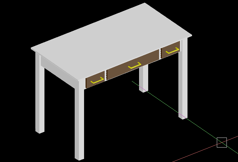 Here is the detailed autocad dwg of working table with drawers and its 3d view of the working table with proper rendering.
