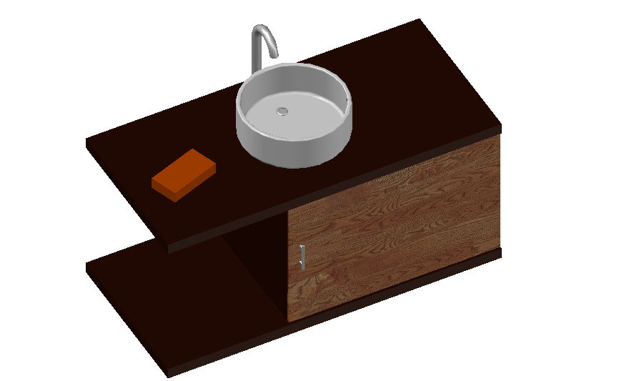 Here is the autocad dwg of table top wash basin design,design elevation of the basin and table with cabinet under it,rendering giving realistic look of the table.