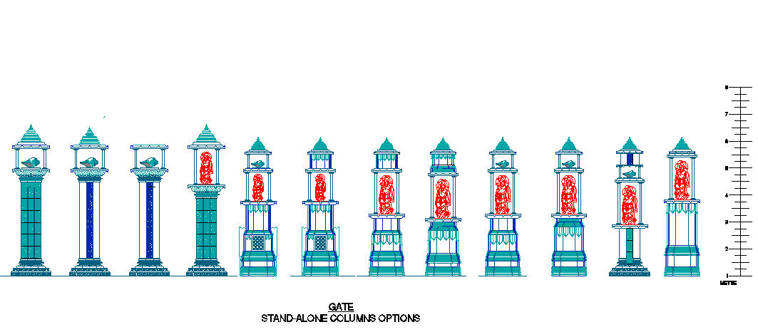 Here is the autocd dwg of decorative elements of historic hindu temples odisha india--columns ,its design elevations of the columns.