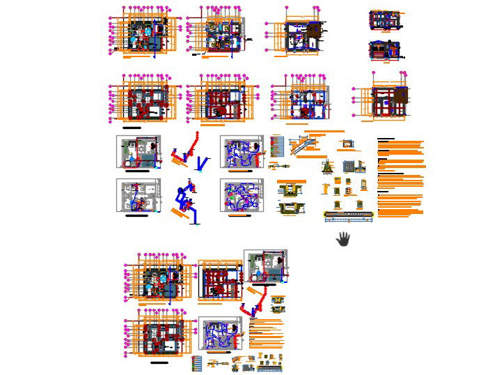 Here is the autocad dwg of floors housing,civil plan of the houses,furniture layout plan,working detail,design elevations of the houses,electrical layout.