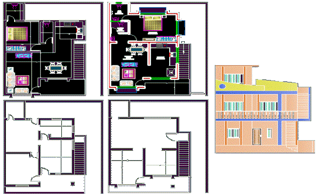 Modern G+1 furniture home design and elevation are available in this cad drawing file. On the ground floor Drawing room, Master bedroom, toilets, kitchen, dining, the living area is available. On the first-floor Drawing room, Master bedroom, toilets, kitchen, dining, living area, are given. beautiful 2d front elevation also given in this drawing file. Download now on cadbull.