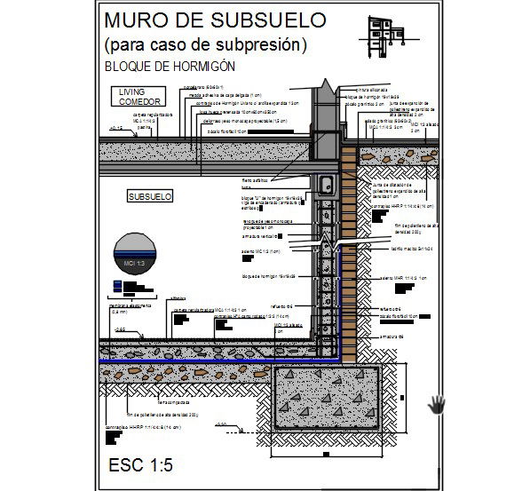 Here is the autocad dwg of basement wall,section of the basement wall with proper detailing of the wall,sectional elevation.