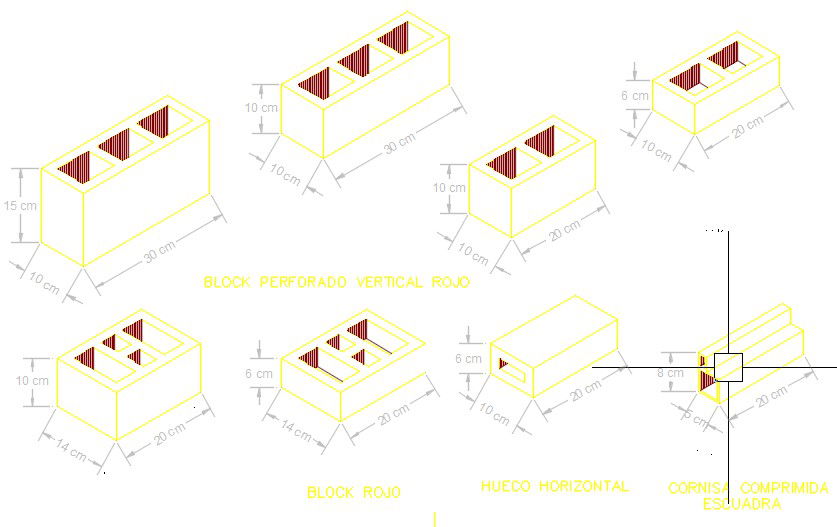 Here is the autocad dwg of hollow blocks of wood,perspective view of the hollow blocks,detail dimension of blocks.
