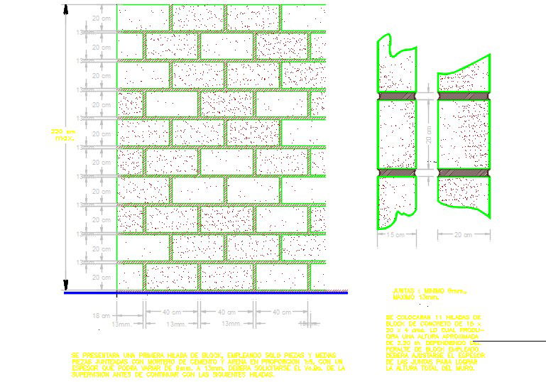 Here is the autocad dwg of hollow cement block,front view elevation of hollow cement block wall and section of cement block wall.