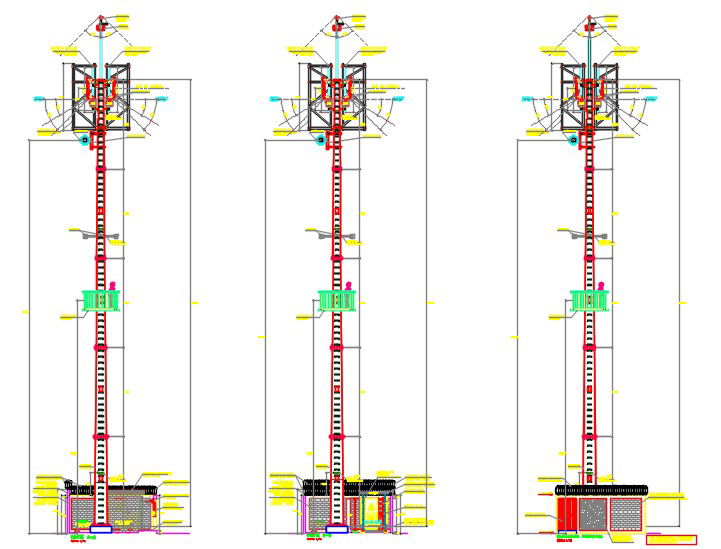 Here is the autocad dwg of mono pole installation of 30 meter,elevations of the pole with detail,sectional elevations of the pole.