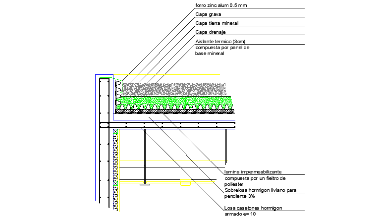 Here is this autocad dwg file the is the plan of an ecological roof with full details.