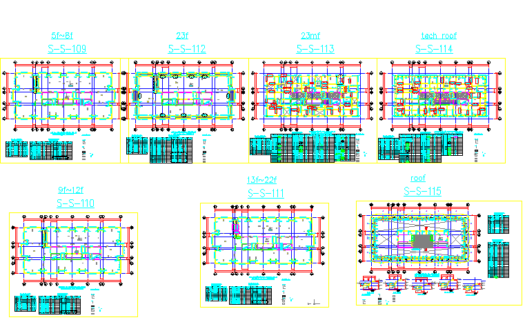 Here is an autocad dwg file for the details of a framing plan tower B . framing plan. A plan of each floor of a building showing the makeup of beams and girders on that floor, and their connections, using a simplified system of symbols and drafting linework.