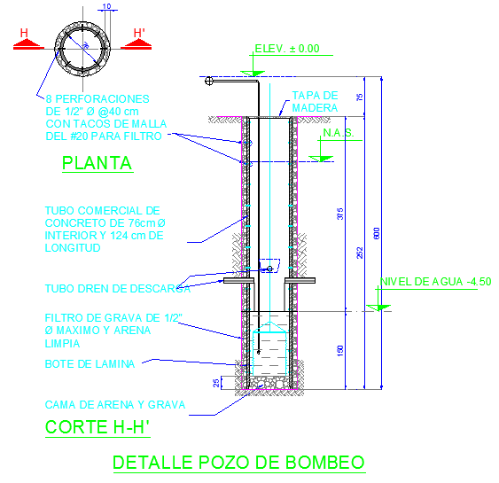 Here in this autocad file there is a details of a pumping well along with its detailed plan.