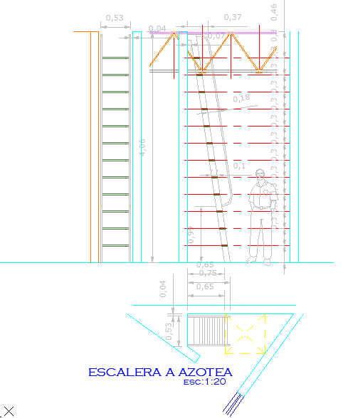 This autocad file consists of Details of a Metallic Stairway and terrace, along with this there is a detailed side elevation and front elevation.