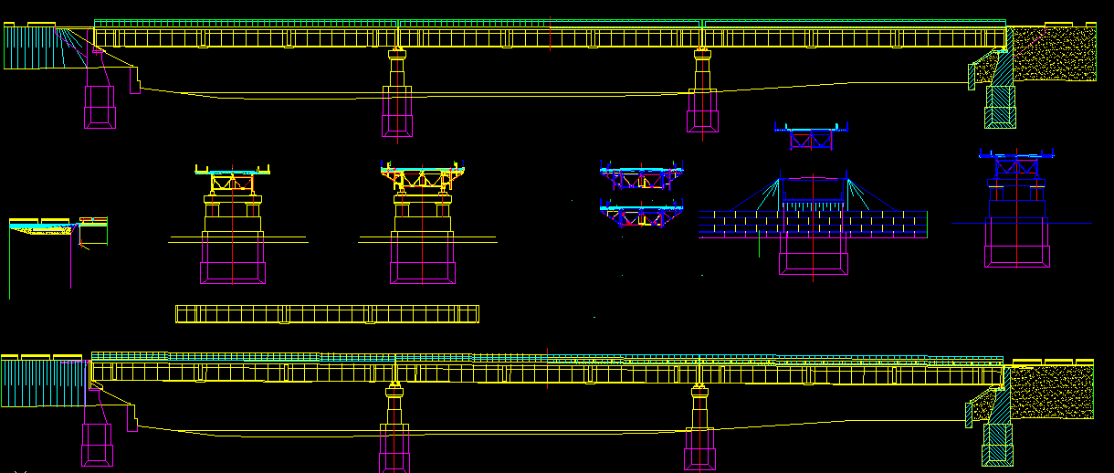 Bridge Design CAD Drawing with Structural Plan and Section Details
