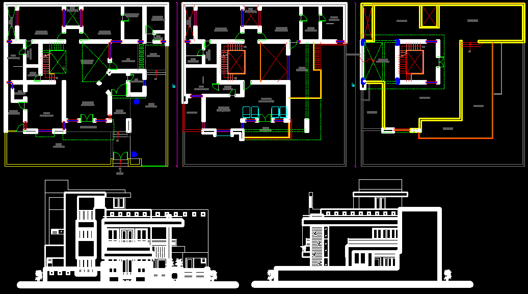 Modern Bungalow CAD Drawing with Floor Plans and Elevation Views