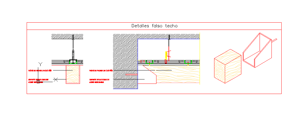 This autocad file consists of Details of a False Roof Ceiling along with its detailed front elevation, side elevation and plan.