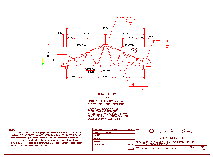 This autocad file consists of Details of a mettalic ridge roof along with detailed plan.