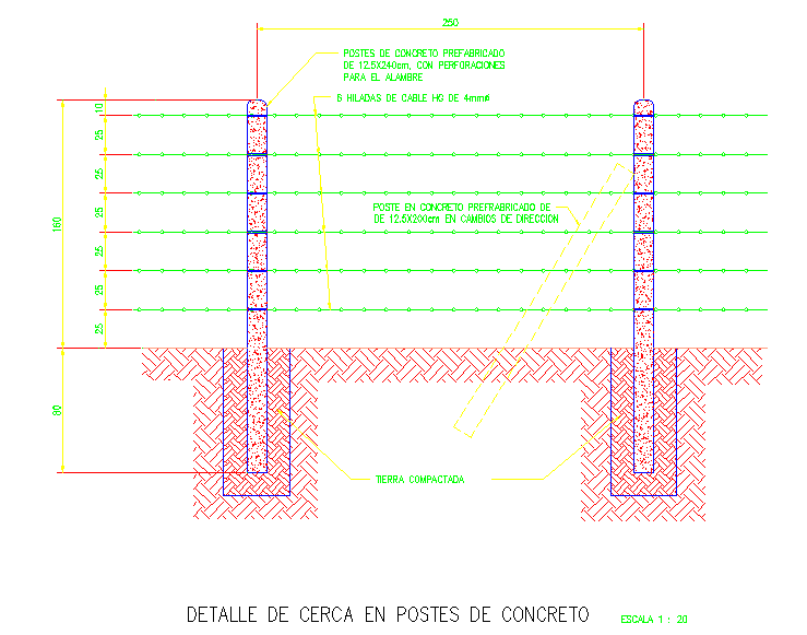 This autocad file consists of Details of wired Fence along with detailed side elevation.