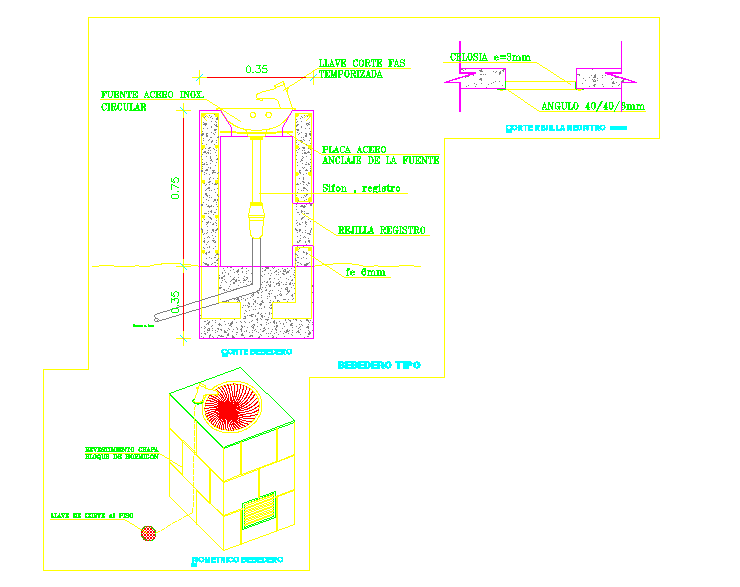 This autocad file consists of Details of a Installing of a Drinking Pipe along with detailed front elevation, side elevation and plan.