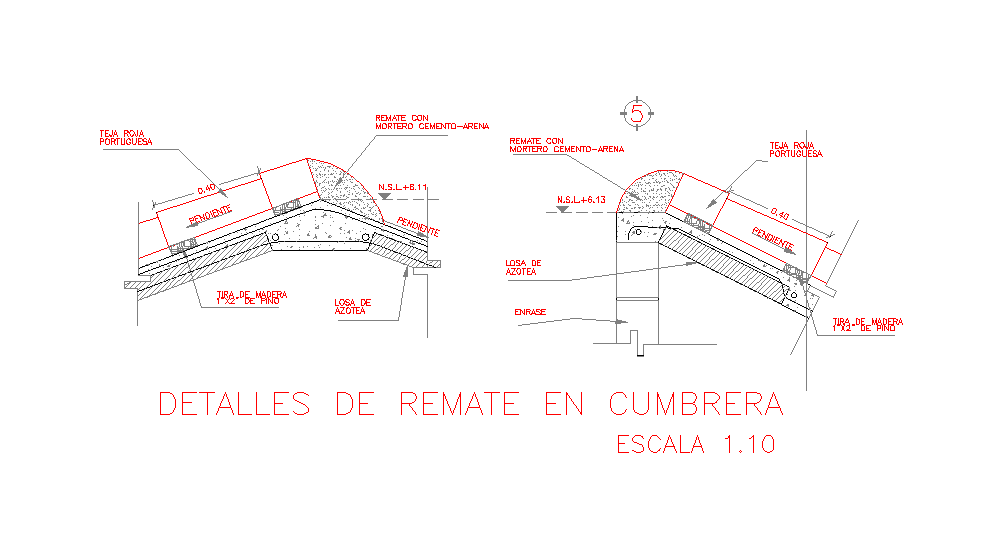 This autocad file consists of Details of a ridge along with detailed side elevation and plan.