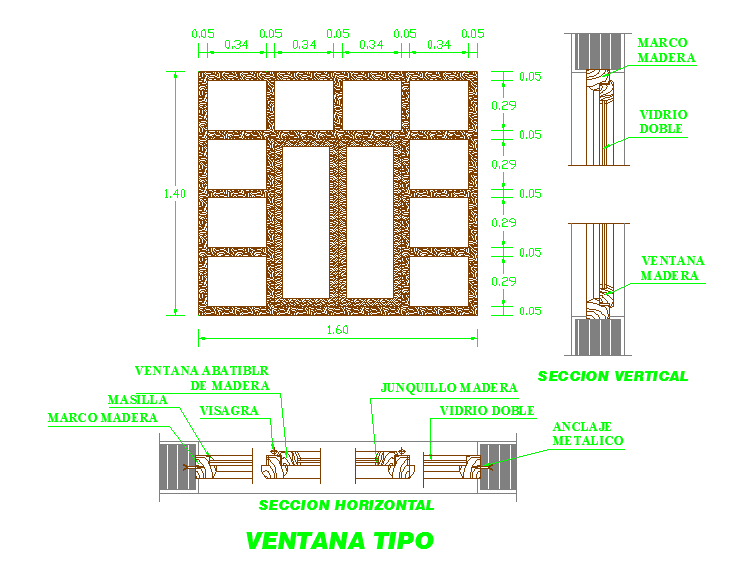 This autocad file consists of Details of a window along with frong elevation, side elevation and plan.
