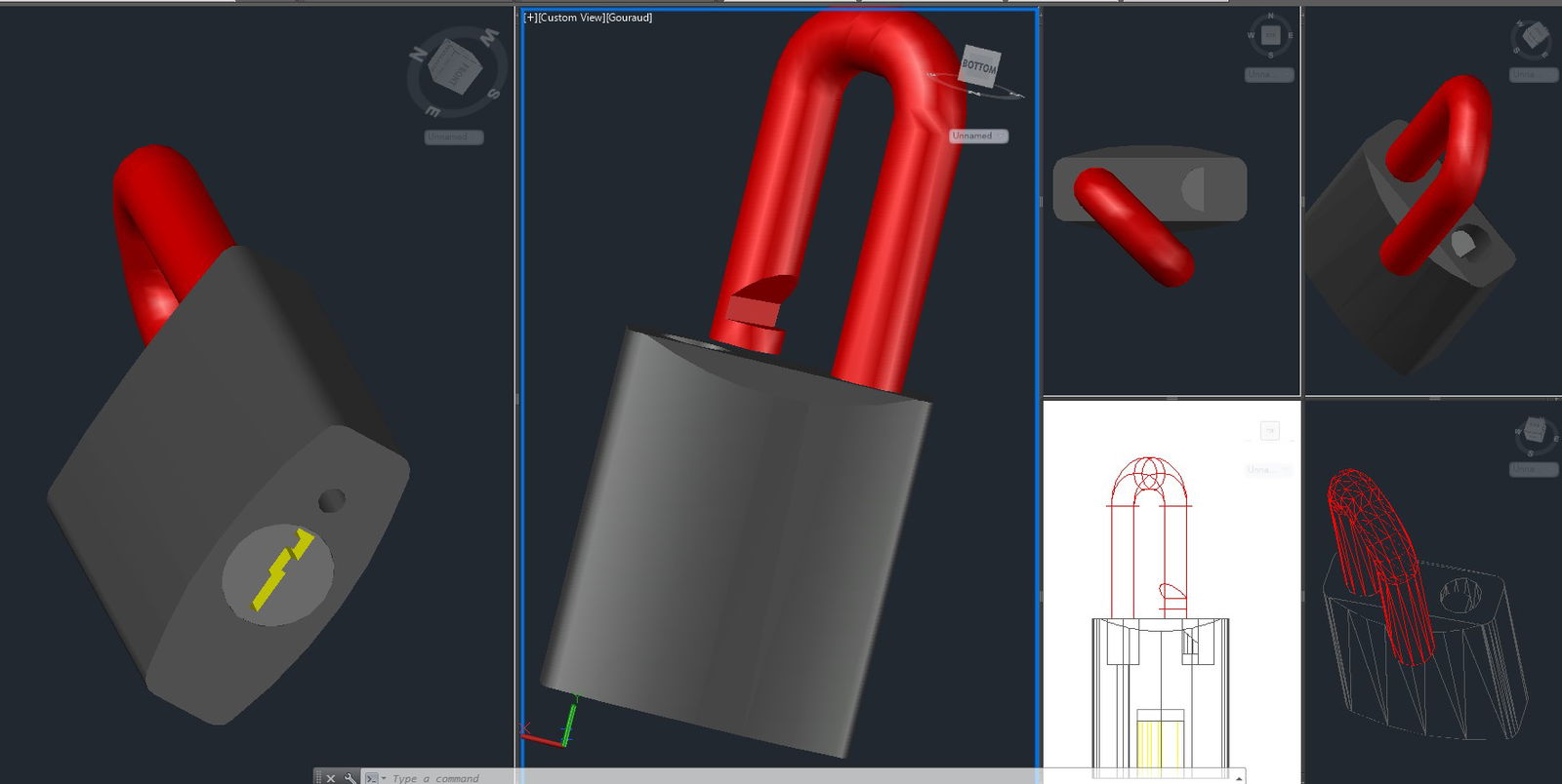 This autocad file consists of Details of a padlock along with front elevation, side elevation and plan.