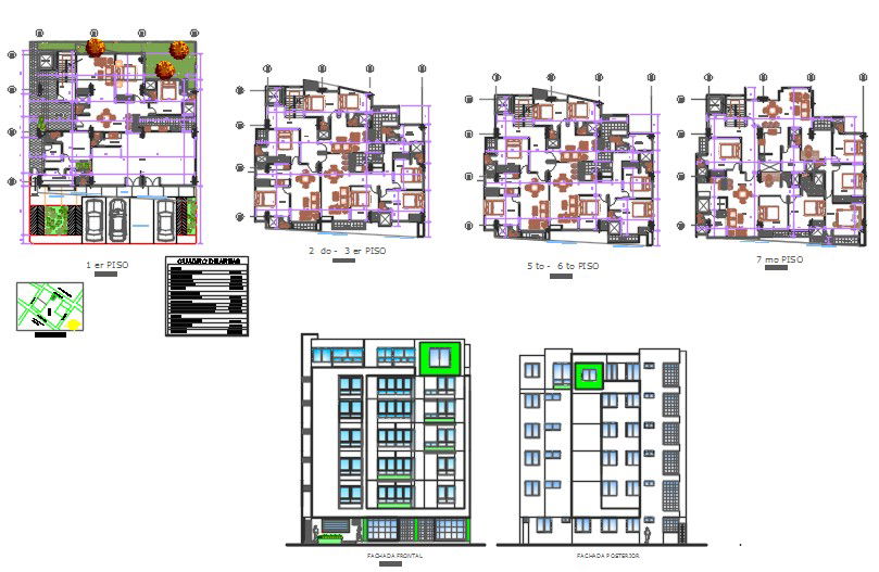 Here is the autocad dwg of multiple family housing consisting of furniture layout,sectional elevation of the houses,design elevations