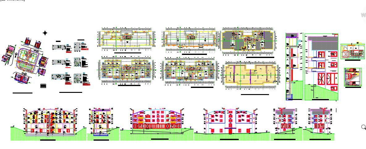 Here is the autocad dwg of apartment flat with its design elevation of the building,sectional elevation,furniture layout plan,civil plan of the apartment.