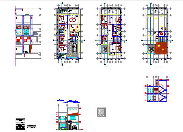 Here is the autocad dwg file of family house with its civil architecture plan,furniture layout plan,proposed,layout plan of the house,design elevation of the house and the sectional elevation of the house.