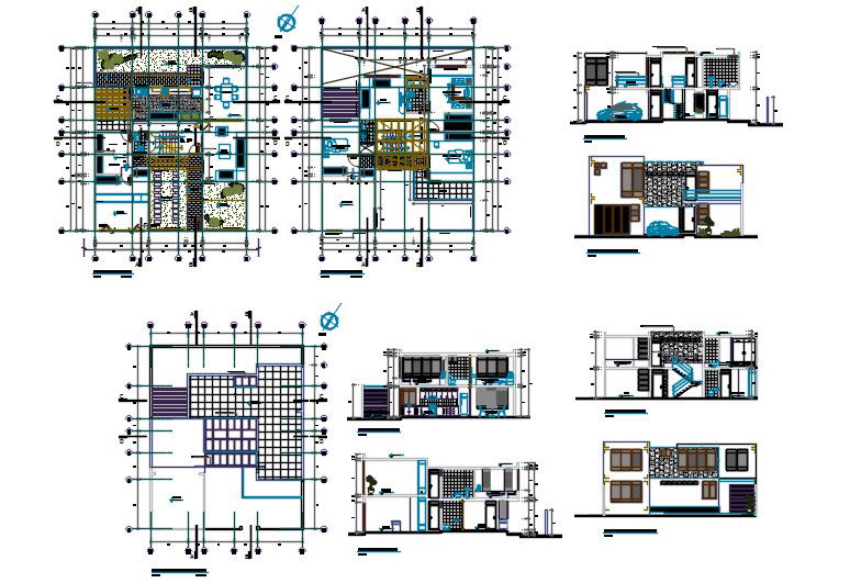 Here is the autocad dwg of home design consists of proposed layout plan of house,furniture layout plan,detail sectional elevation of the house,design elevation of the house,front and side elevations.