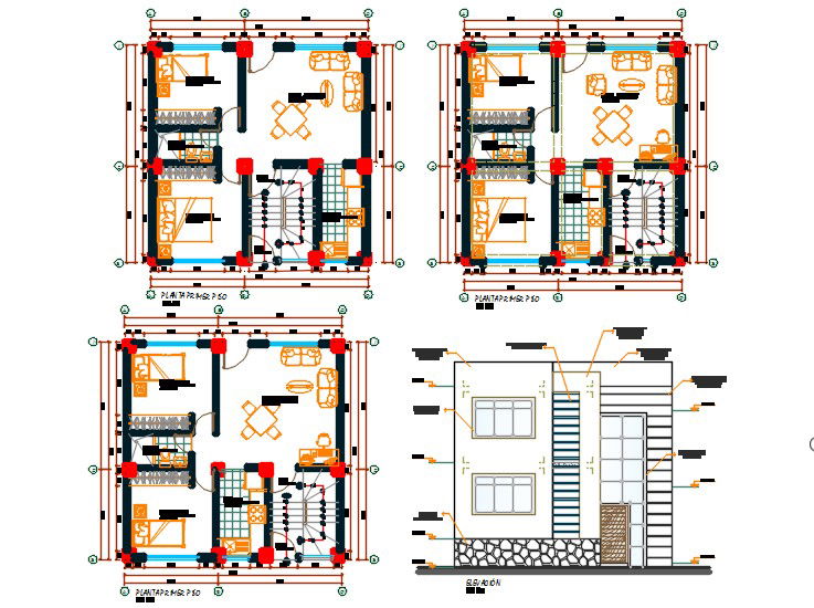 Here is the autocad dwg of home design,furniture layout plan of the home,proposed layouts,front elevation of facade.