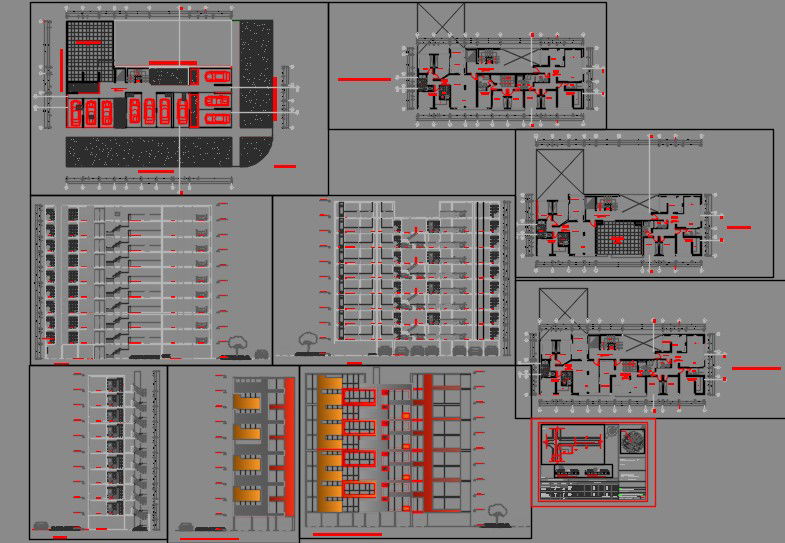 Here is the autocad dwg of multi family 10 storeys consists of parking plan of the building,civil plan of the building,proposed layout,furniture layout,design elevations of the building,sectional elevation.